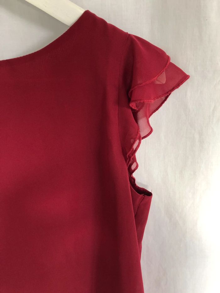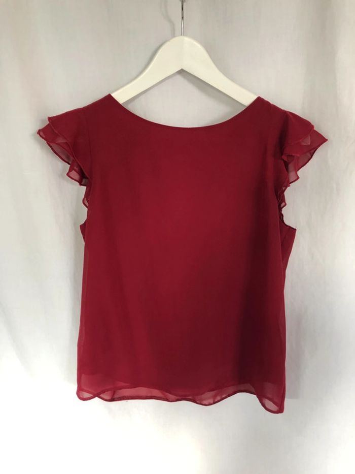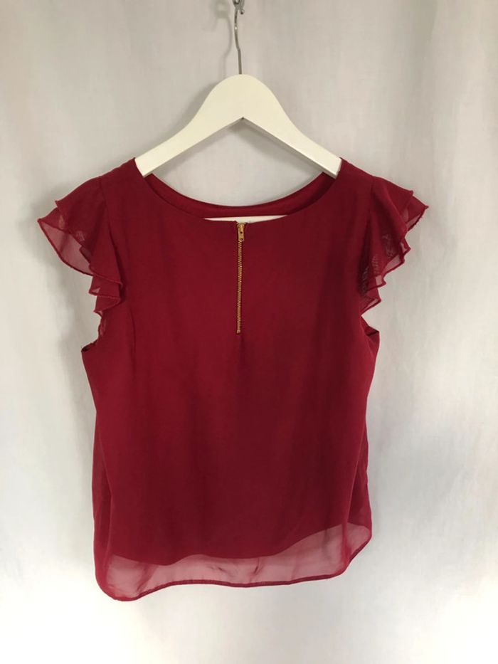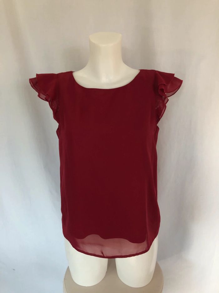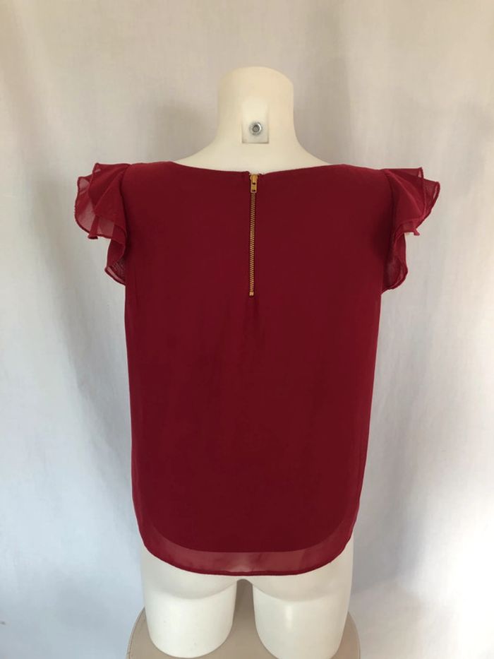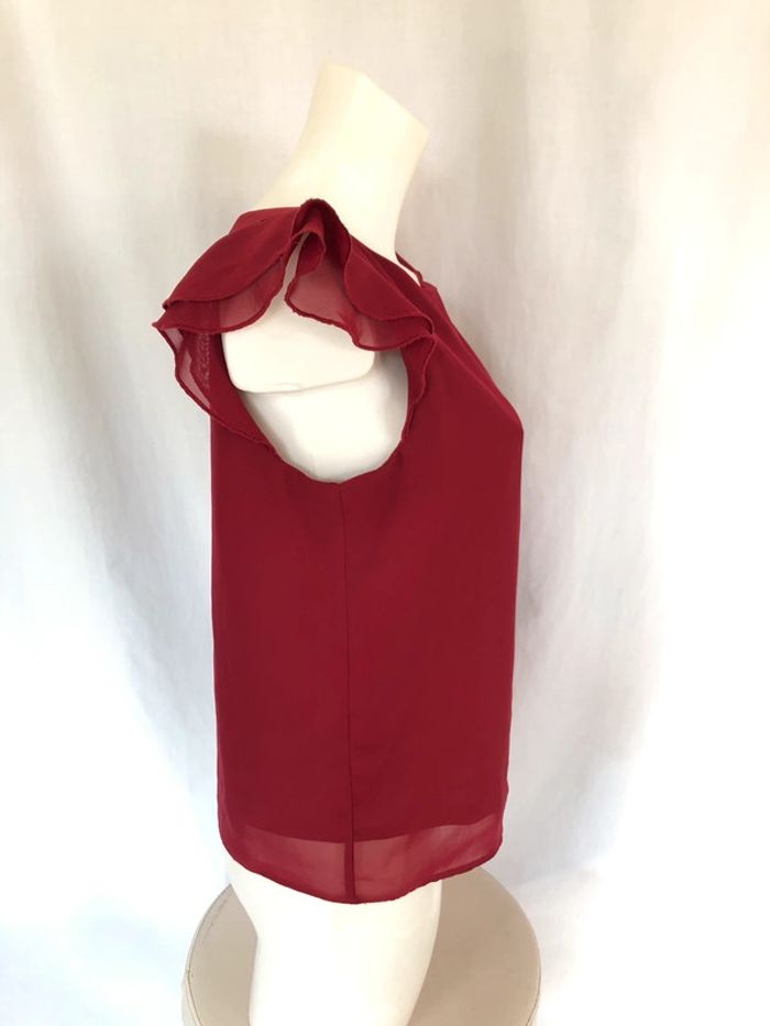 Blouse bordeaux sans manches à volants Clockhouse taille 36 / 38 comme neuve - photo numéro 4