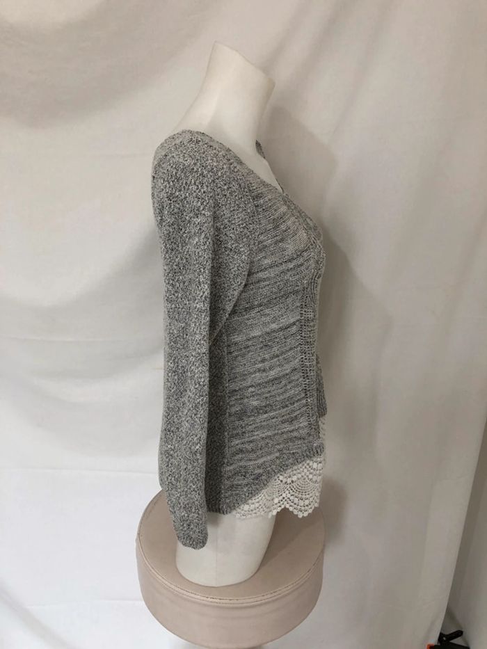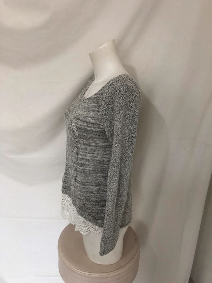 Pull gris ajouré Le Temps des Cerises avec effet crochet S / 36 38 très bon état - photo numéro 3