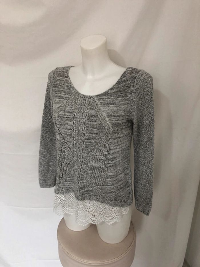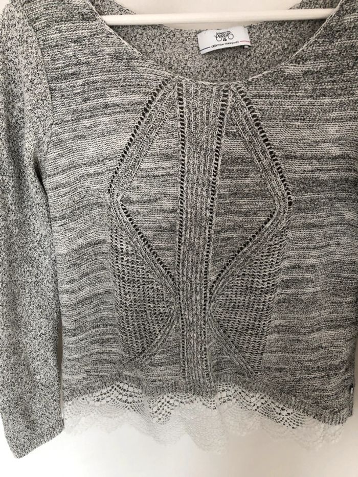 Pull gris ajouré Le Temps des Cerises avec effet crochet S / 36 38 très bon état - photo numéro 1