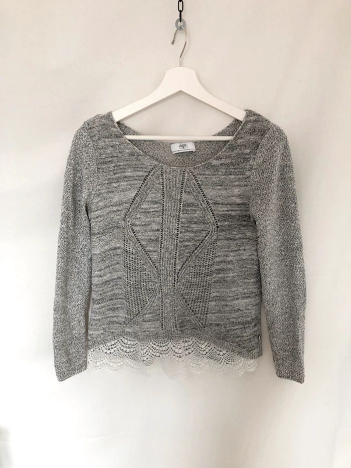 Pull gris ajouré Le Temps des Cerises avec effet crochet S / 36 38 très bon état