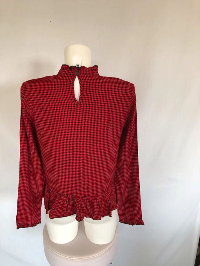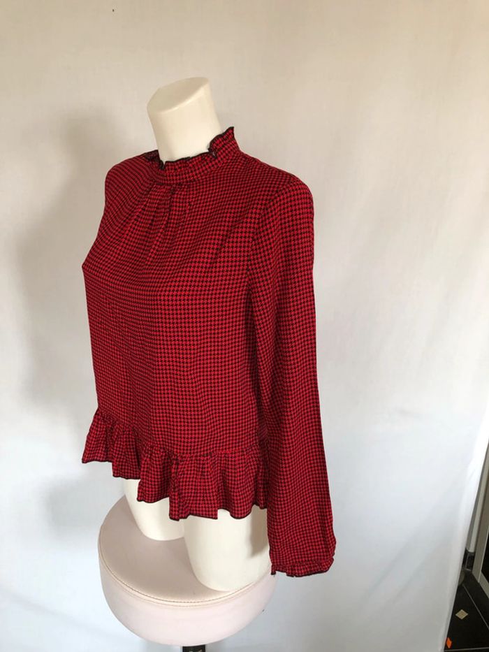 Blouse rouge et noire pied de poule col montant Pimkie taille S / 36 38 neuve - photo numéro 9