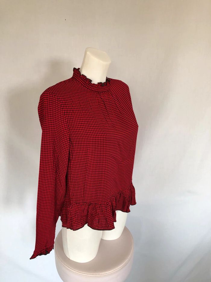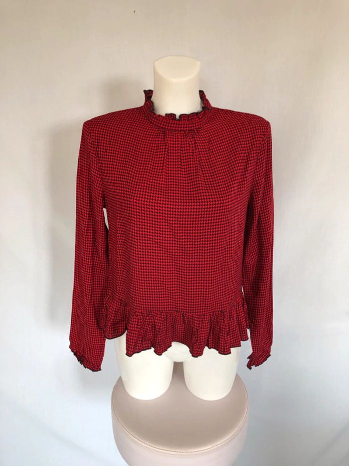 Blouse rouge et noire pied de poule col montant Pimkie taille S / 36 38 neuve