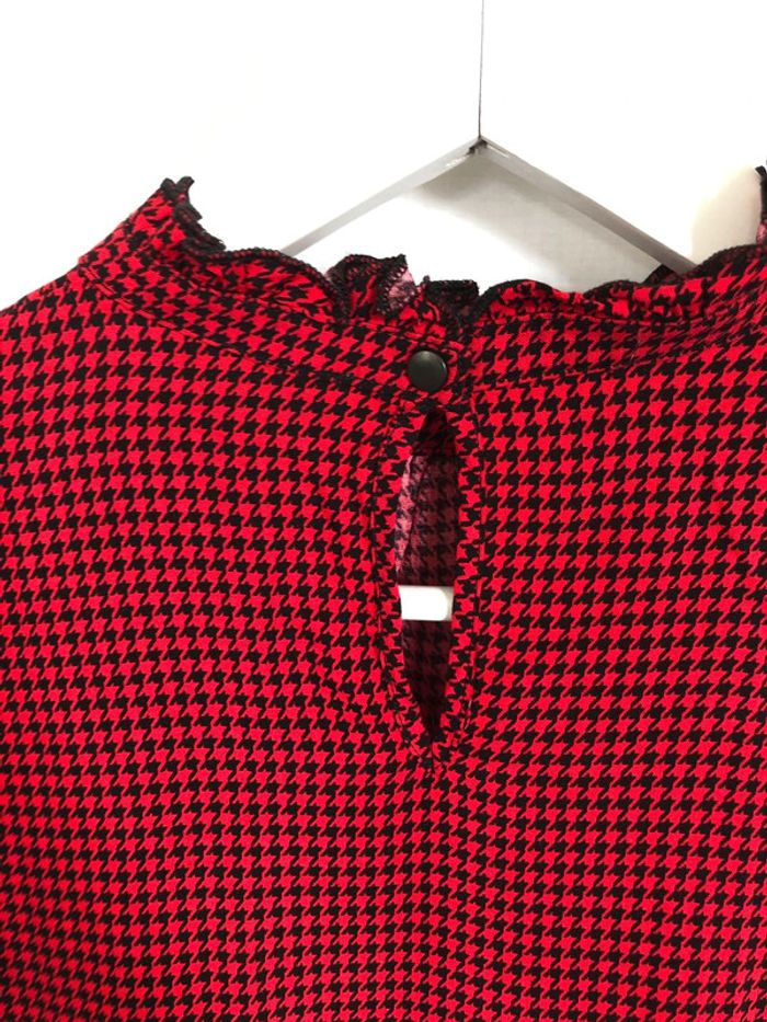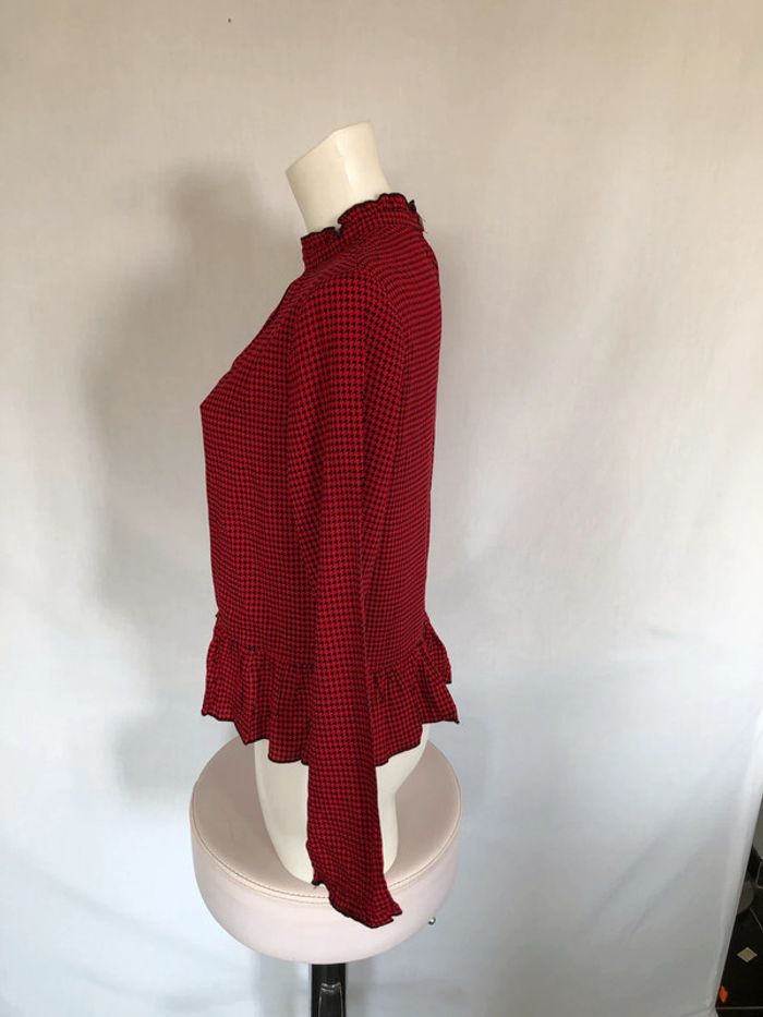 Blouse rouge et noire pied de poule col montant Pimkie taille S / 36 38 neuve - photo numéro 13