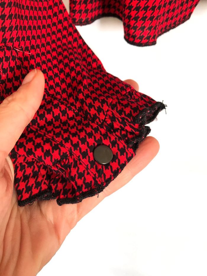 ⤵️ Merci de cliquer et de lire l’annonce en entier ⤵️ Superbe blouse à col montant plissé, bas effet volanté. Peut convenir sans problème à une taille 38. Bouton métal au niveau des poignets, et un bouton également au niveau de la nuque. Motif pied-de-poule rouge et noir. 📏 Mesures : 📏 Longueur 57cm Poitrine à plat 47cm Taille 45cm Manche 59cm Épaules 39cm 🧶Composition🧵 : voir étiquette. 😉 Une blouse magnifique, élégante, avec un côté #romantique 😁 🏷 Tags : 🏷 #blouserouge36 #blouserouge #blouse36 #blousecolmontant #blousecolmontant36 #blousePimkie36 #nessdufrattaille36 #Pimkie #Pimkie36 #nessdufratblouse #blouseromantique #nessdufratgrandetaille #blousepieddepoule #motifpieddepoule #blousepieddepoule36 #blousevolantée36 #femme36 #hautfemme36 #blousefemme36 #blouserouge38 #blousefemme38 #nessdufrattaille38 #femme38 #hautfemme38 #blousecolmontant38 #blousecolhaut #blousecolhaut36 #blousecolhaut38 #Pimkie38 #blousePimkie38 #blouseromantique36 #blouseromantique38 #blousepieddepoule38 #blousevolantée38 🗂 Mots-clés pour les recherches (multilingues) : 🗂 Pata de gallo ; Punto de gallo ; Pied-de-poes ; Cao de caca ; hahnentritt ; houndstooth