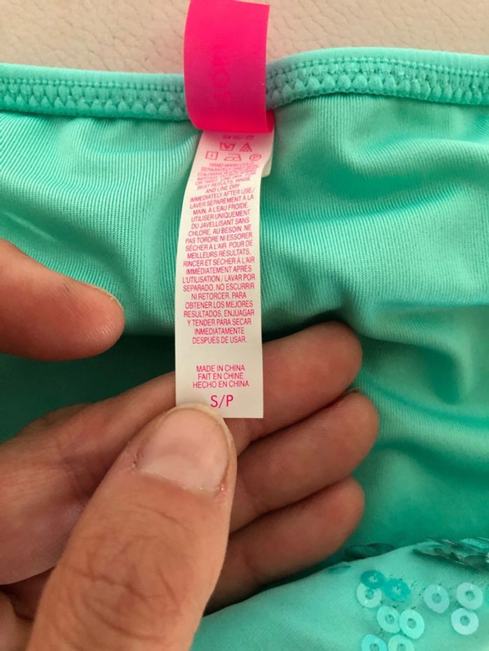 ⤵️ Merci de cliquer et de lire l’annonce en entier ⤵️ Un sublime maillot de bain deux pièces, culotte en 36, soutien-gorge en 90A (noté 34A mais c’est la taille américaine). En vrai, il est quasi comme neuf, mais la copine qui me l’a donné a perdu les bretelles. Mon mannequin fait un bon 90C, raison pour laquelle impossible pour moi de faire tenir le soutien-gorge de maillot dessus et que la pose est un peu débile (ça aurait été encore plus débile sur mon 90E, croyez-moi ^^) Très belles décorations en sequins sur le haut de maillot, et volants et sequins sur le haut de la culotte. J’ai quasi le même en blanc (avec d’autres décorations) que je vais lister bientôt. La couleur est bien celle des premières photos et pas celle de la toute dernière photo (j’avais oublié de prendre une photo de l’intérieur de la culotte, je l’ai fait avec peu de lumière). Retrouvez mes autres maillots sur #nessdufratmaillotdebain 📏 Mesures :📏 90A pour le soutien-gorge. Taille à plat 37cm pour la culotte. 🧶Composition🧵 : voir étiquette. 😉 Très joli maillot de bain, très original avec ses décorations en sequins et ses volants, et un bel effet pushup 😁 🏷 Tags : 🏷 #maillotdebaindeuxpièces #maillotdebaindeuxpièces36 #maillotdebain36 #maillotdebainturquoise #maillotdebainvictoriassecret36 #victoriassecret #victoriassecret36 #nessdufratmaillotdebain #maillotdebainfemme36 #nessdufrattaille36 #maillotdebainpushup #maillotdebainsequins #maillotdebainsequins36 #maillotdebainsansbretelles #maillotdebainvictoriassecret #maillotdebain90A #maillotdebainturquoise36 #maillotdebain2pièces #maillotdebain2pièces36 #maillotdebainbikini #maillotdebainfemme36