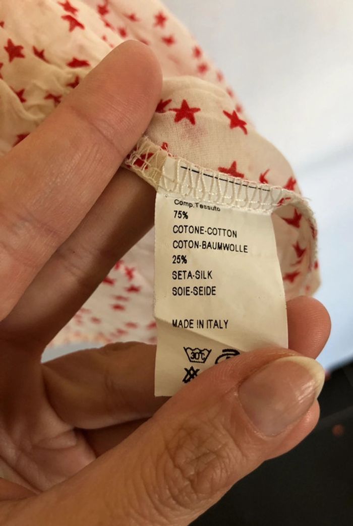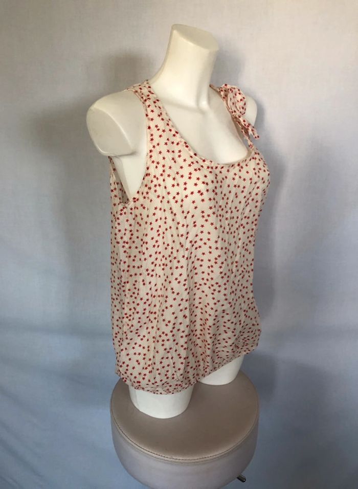 ⤵️ Merci de cliquer et de lire l’annonce en entier ⤵️ Superbe top blanc étoiles rouge foncé (façon pois, mais version étoiles ^^), nœud sur une épaule. En partie soie. Resserré à la taille. Tissu léger et très agréable pour l’été. Retrouvez mes autres articles en soie sur #nessdufratsoie ! 📏 Mesures : 📏 Longueur 66cm Poitrine à plat 51cm Taille 52cm 🧶Composition🧵 : Voir étiquette. 😉 Un top de belle qualité, léger et mignon avec son nœud sur l’épaule 😁 🏷 Tags : 🏷 #débardeuràétoiles #topsansmanchesàétoiles #topsansmanchesétoiles #topsansmanches40 #topàétoiles #topsansmanchesàétoiles #topàétoiles40 #topblancàétoiles40 #débardeurblancàétoiles #débardeurblancàétoiles40 #Lepharedelabaleine #Lepharedelabaleine40 #nessdufrattop #nessdufrattaille40 #hautfemme40 #femme40 #débardeurfemme40 #topfemme40 #topLepharedelabaleine40 #topblancàétoiles #topensoie #topensoie40 #topblancétoilesrouges #topblancétoilesrouges40 #topblancensoie #topblancensoie40 🗂 Mots-clés pour les recherches (multilingues) : 🗂 Soie ; Silk ; Seide ; seda ; seta ; zijde ; seda