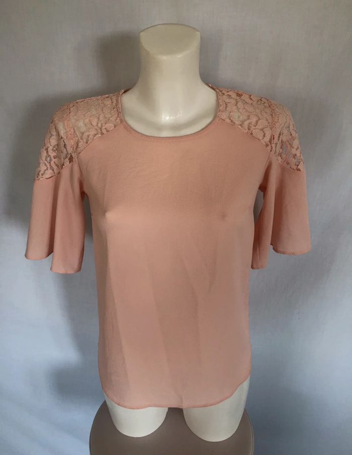Blouse rose pâle épaules dentelle Atmosphere taille 34 36 comme neuve - photo numéro 2
