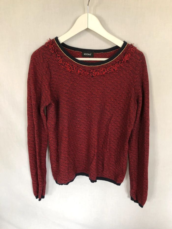 Pull à franges rouge foncé Kookai taille 1 / 36 38 très bon état - photo numéro 1