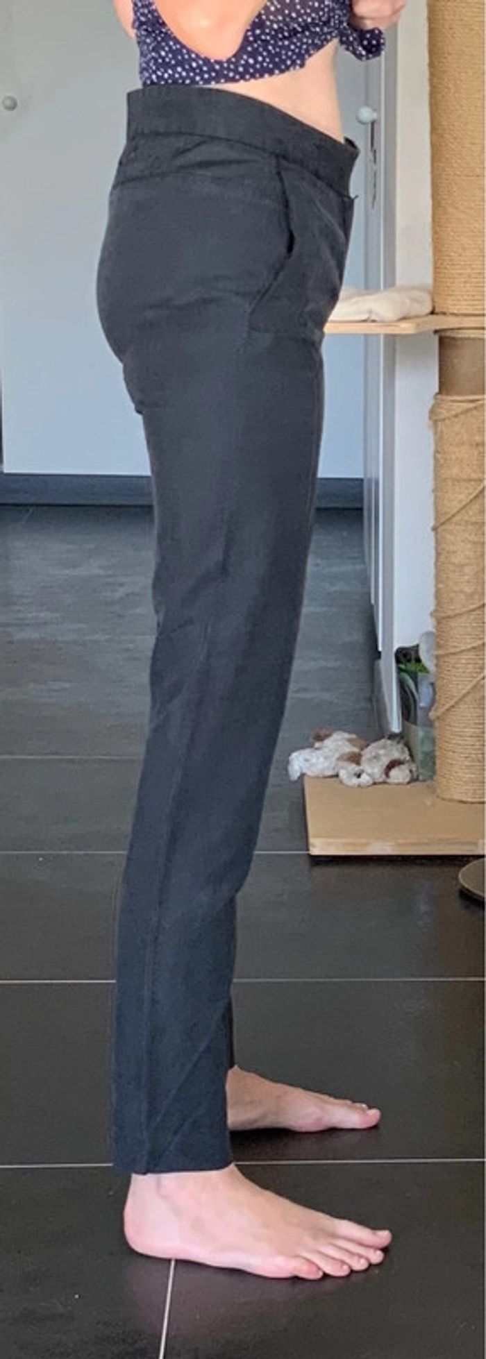 Très beau pantalon, tout doux au touché, tissu légèrement brillant. Coupe droite, resserrée à la cheville. Il est taille normale, donc pas taille haute. Certaines photos prises en pleine lumière pour montrer ses beaux reflets ! Photos portées dans l’annonce. J’ai pris du poids depuis les photos portées et je ne rentre plus dedans, donc ça ne servira à rien de me demander d’en faire d’autres… 😭 📏 Mesures : 📏 Taille à plat 36cm Longueur totale 100cm Longueur depuis l’entrejambe 78cm Longueur de la taille à l’entrejambe 24cm Largeur en bas 14.5cm 🧶Composition🧵 : Voir étiquette. 😉 Un superbe pantalon de ville, très belle coupe, et beau tissu tout doux 😁 🏷 Tags : 🏷 #maje #maje34 #pantalonmaje #pantalonmaje34 #nessdufratpantalon #pantalongrisanthracite #pantalonanthracite34 #pantalongrisfoncé34 #pantalondeville34 #pantalondeville #pantalonfemme34 #pantalon34 #nessdufrattaille34 #pantalontouchémicrofibre
