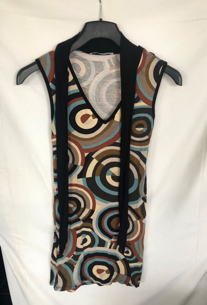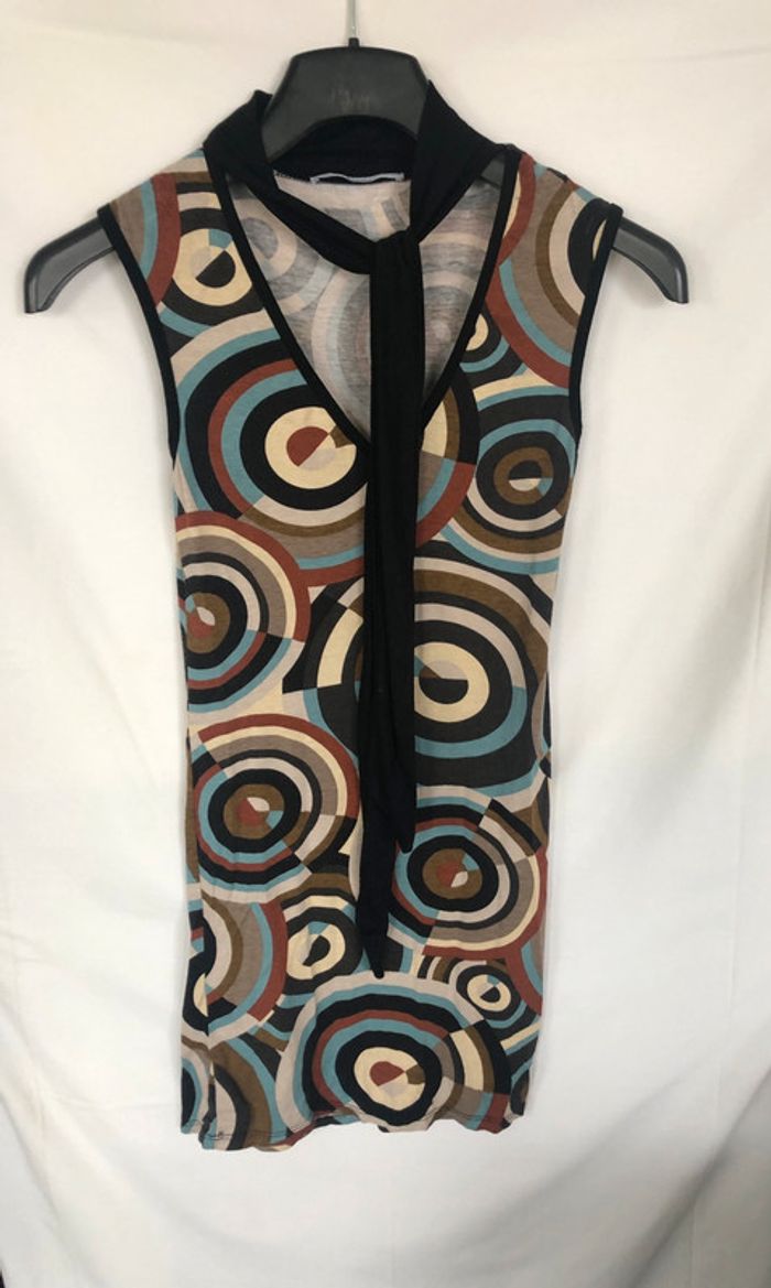 Top sans manches Xanaka motifs vintage avec lavallière taille 34 / XS bon état - photo numéro 2