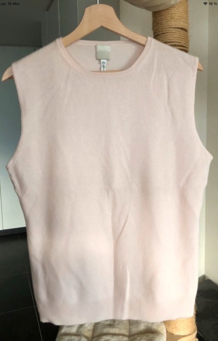 Pull sans manches 100% cachemire rose pâle Bon Génie Grieder taille XL / 42 neuf - photo numéro 9