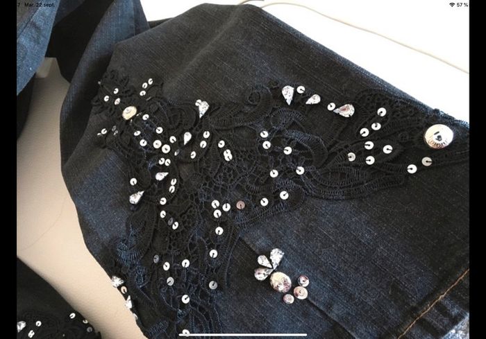 Jean bleu foncé 3 Suisses taille 44 brodé de strass excellent état - photo numéro 14