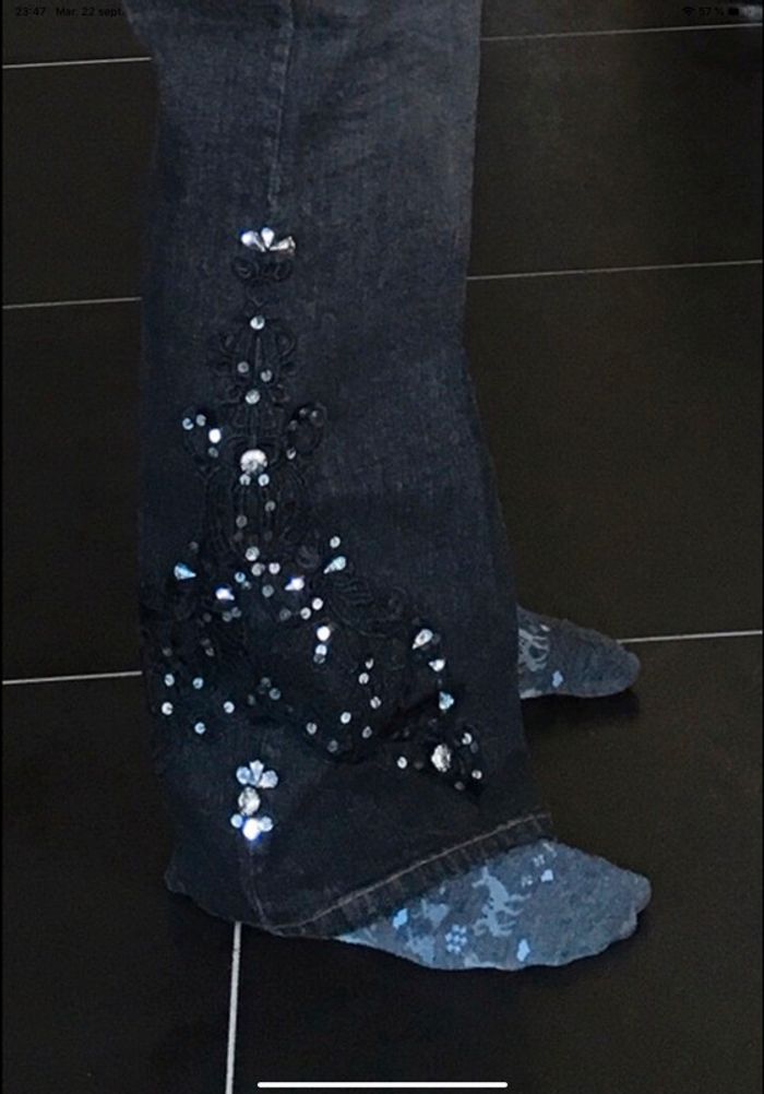 Jean bleu foncé 3 Suisses taille 44 brodé de strass excellent état - photo numéro 15