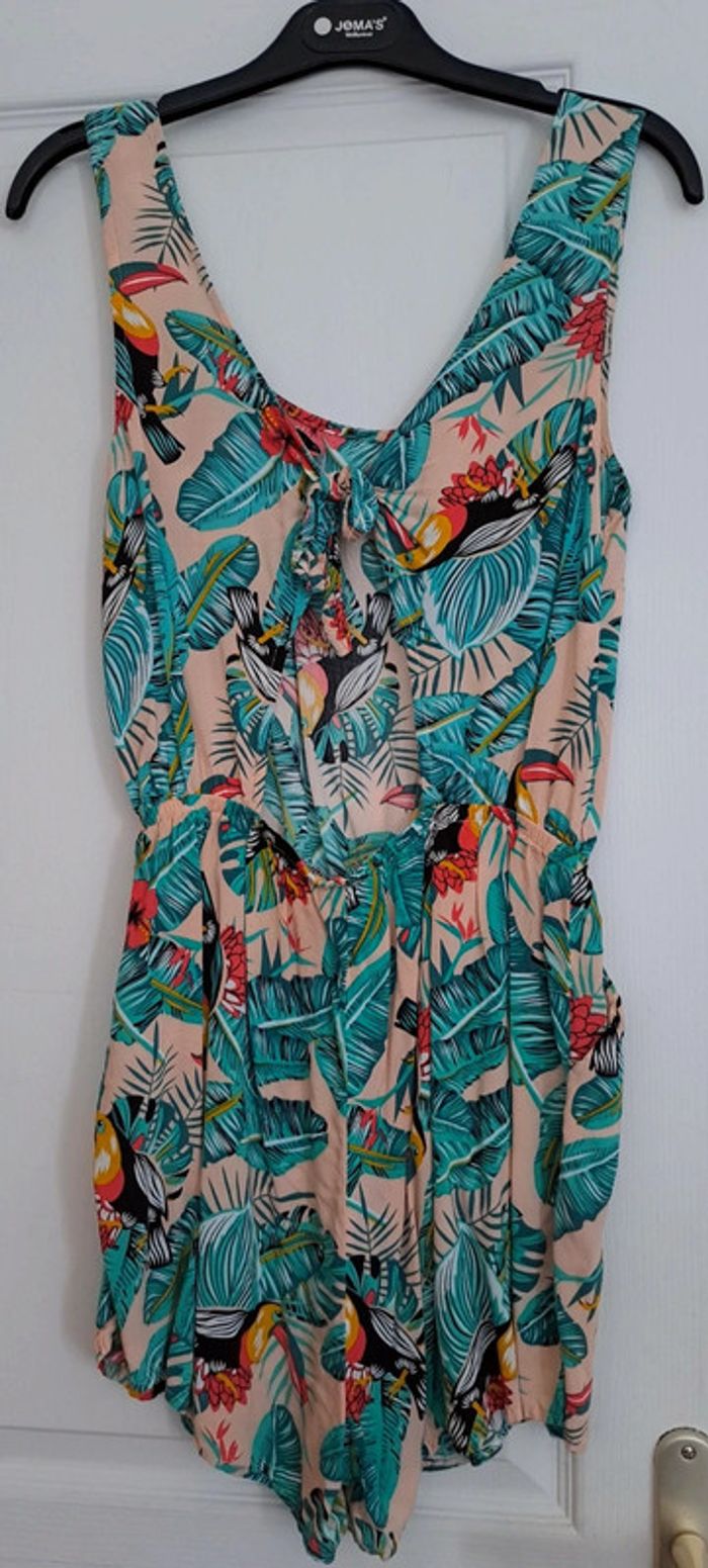 Combishort très léger, taille élastique, ouvert dans le dos, peu porté Tous mes vêtements sur mon profil #cessforeverfemme #combishort36 #gemo36 #femme36 #combishorttropical36 #motiftropical36 #combishortfleuri36 #combishortleger36