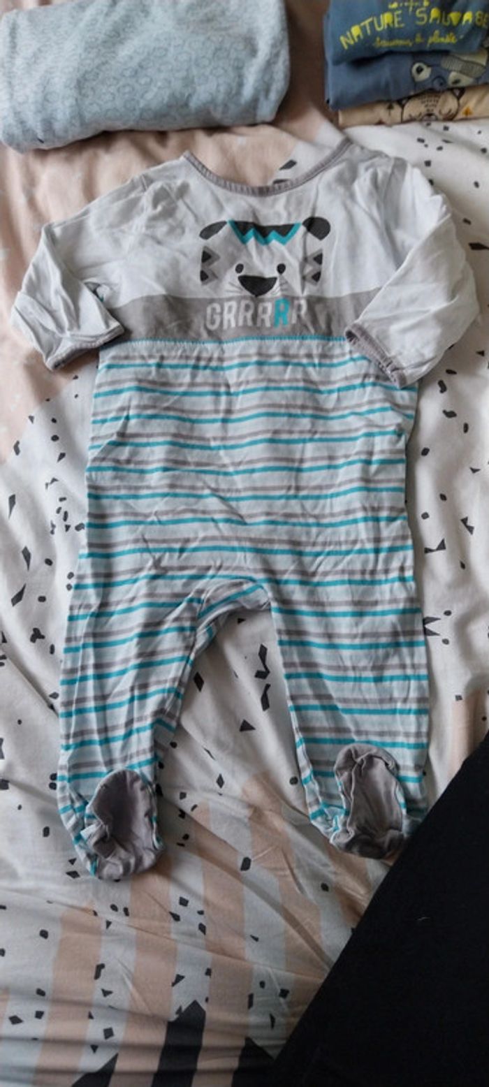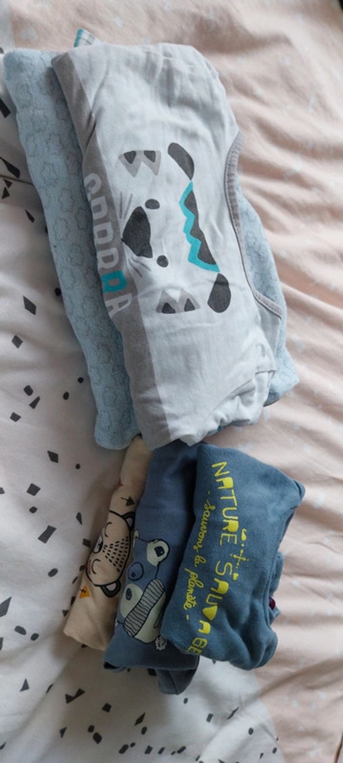 3 tee-shirts manches longues et 2 pyjamas. Toutes marques.