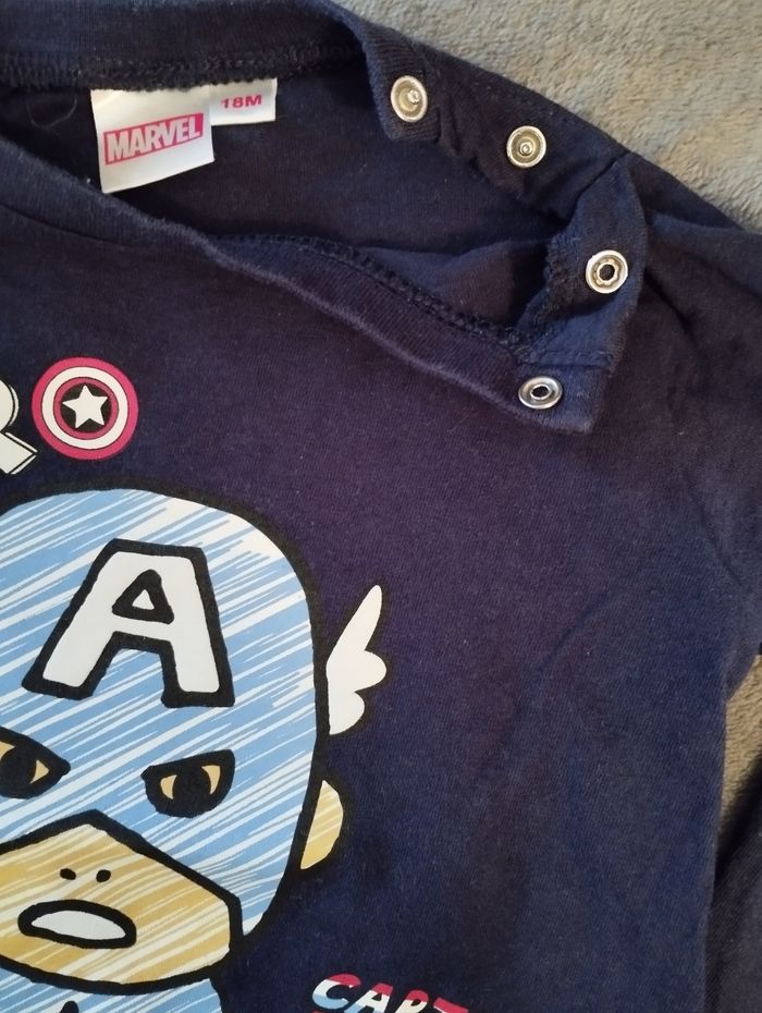T.Shirt manches longues Captain America pour bébé garçon Taille 18 mois Boutons pression au col pour un enfilage facile 📍 Très bon état, très peu porté