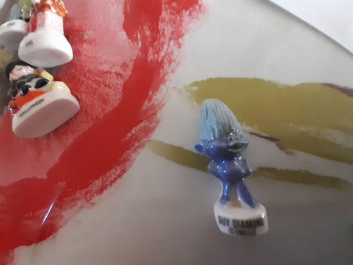 6 fèves porcelaines fêtes de l'année -épiphanie,1er avril,pâques,1er mai, fête des pères, halloween ,noël 15.00€ 6 fèves diverses -mont st Michel, 1 canard, cup cake(plastique) -Guy Diamond(personnage fiction) -Strangulat(Harry Potter) -mademoiselle chiffre 1998
