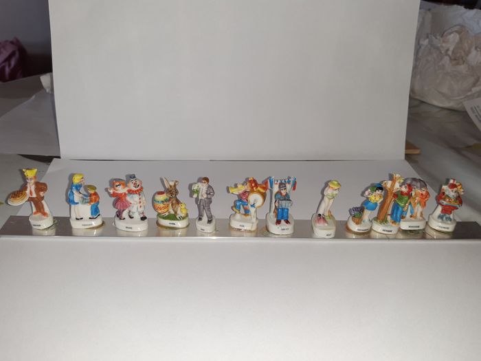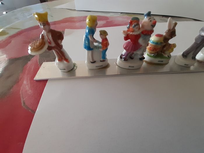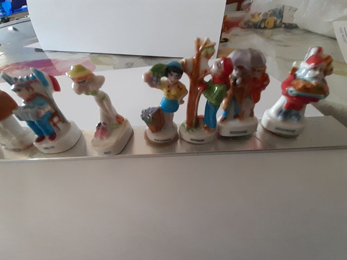 fèves 12 mois de l'année en porcelaine -janvier, février, mars,avril,mai,juin,juillet,aout,septembre,octobre,novembre,décembre 15.00€ personnages et animaux correspondants aux fêtes.