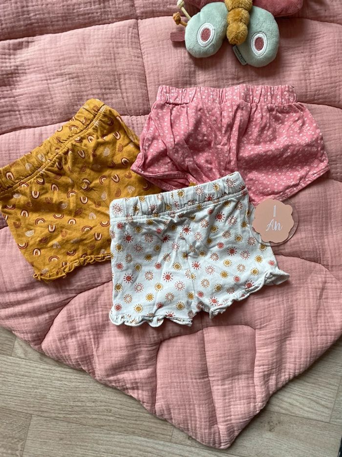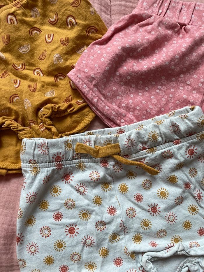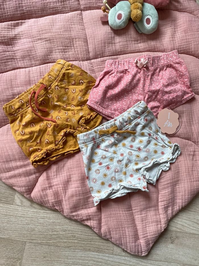 ✨ Lot de 3 short à motifs ✨ Couleur : rose , jaune/moutarde, gris/blanc ✨ Taille : 12 mois ✨ État : bon état ✨ Saison : Été
