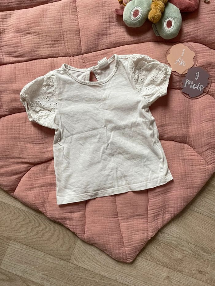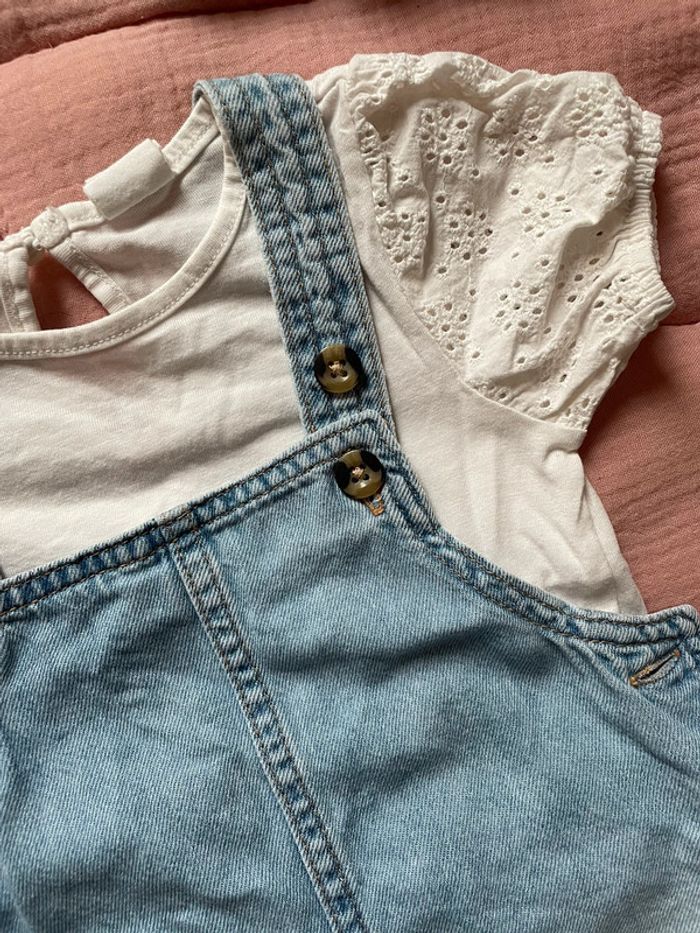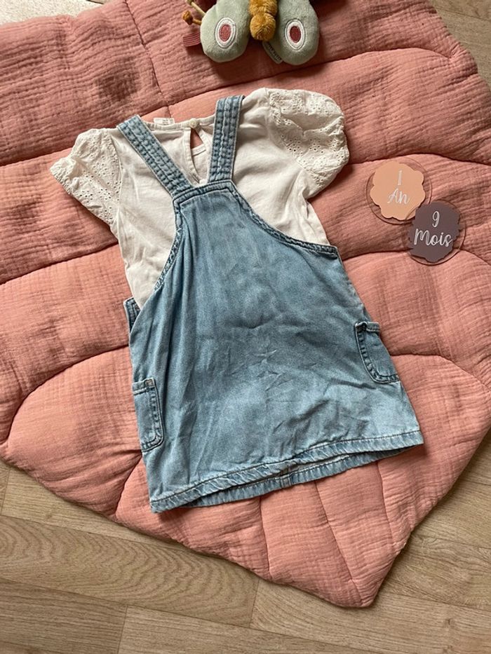 ✨ Ensemble Tee-shirt blanc et robe en jean ✨ Couleur : blanc et bleu jean ✨ Taille : 9/12 mois (74cm) ✨ État : Très bon état ✨ Saison : Mi saison