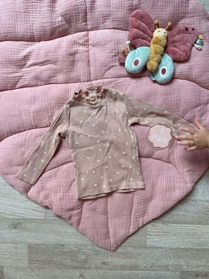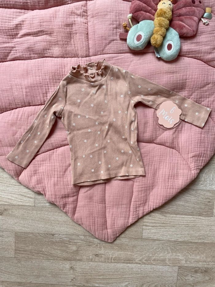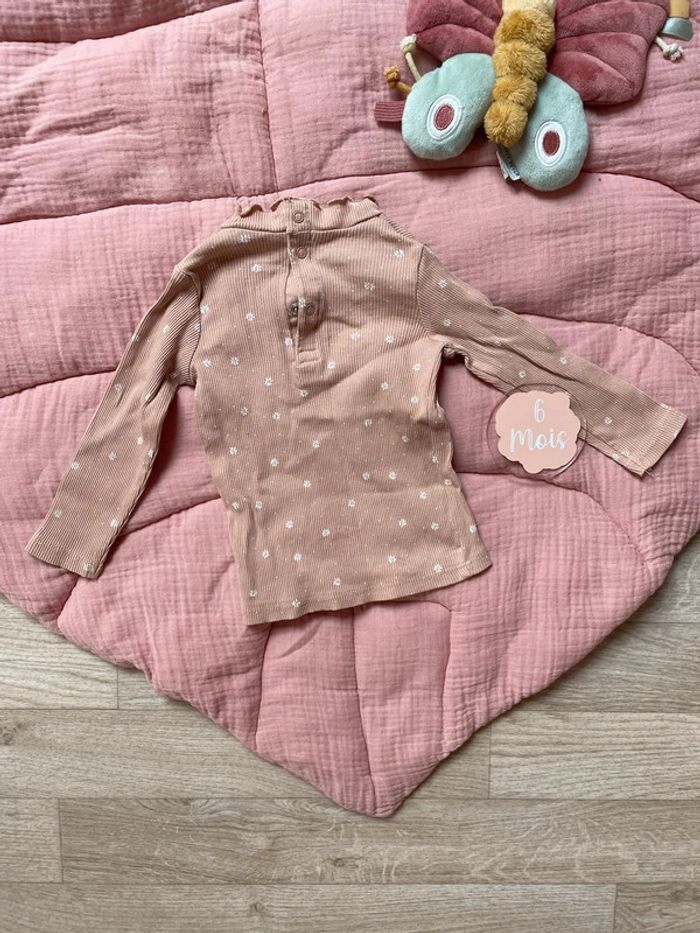 ✨ Tee-shirt petit col à fleur ✨ Couleur : beige crème ✨ Taille : 6 mois (63/69 cm) ✨ État : Comme neuf , porté 1 fois ✨ Saison : Toute saison