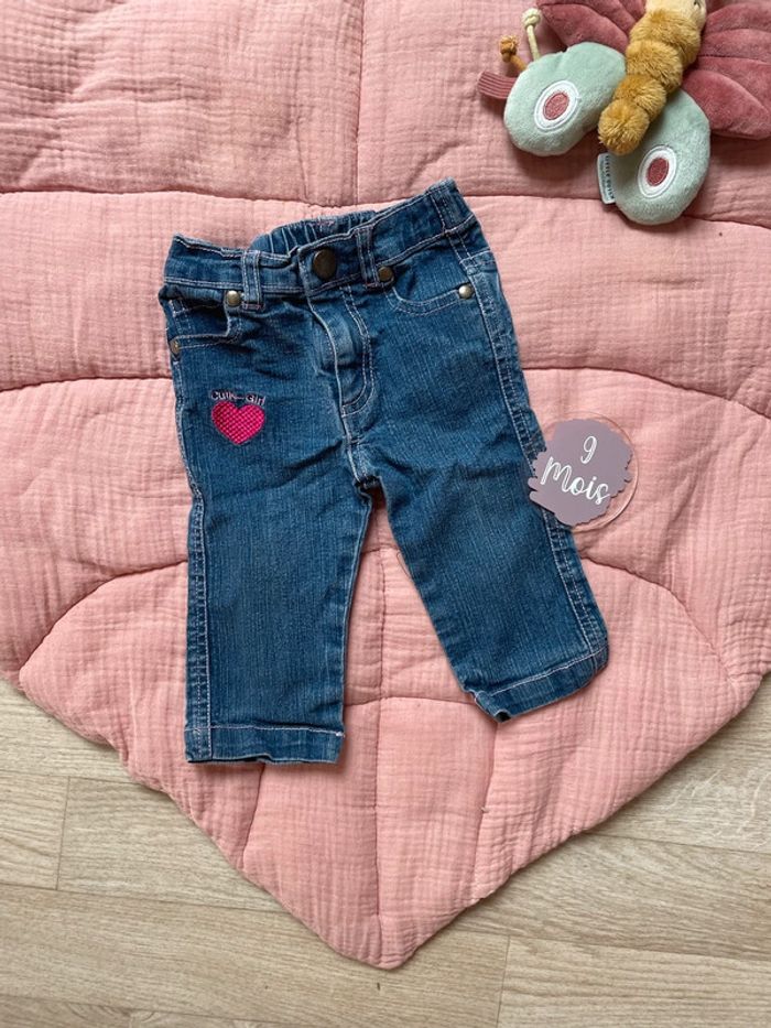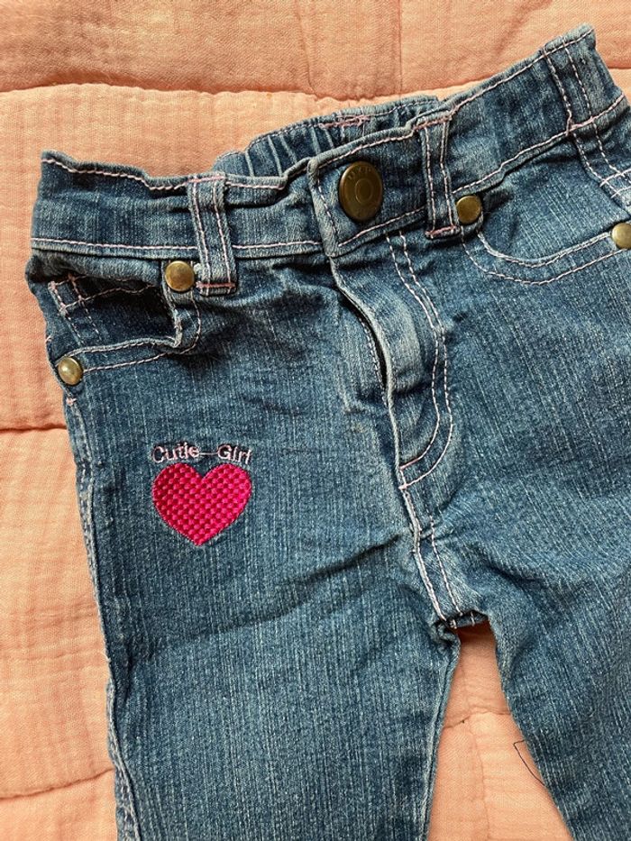 ✨ Jean bleu , coeur rose ✨ Couleur : bleu et rose ✨ Taille : 9 mois ✨ État : Très bon état ✨ Saison : Toute saison