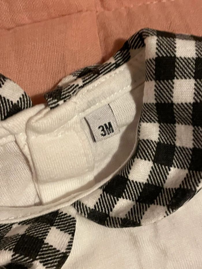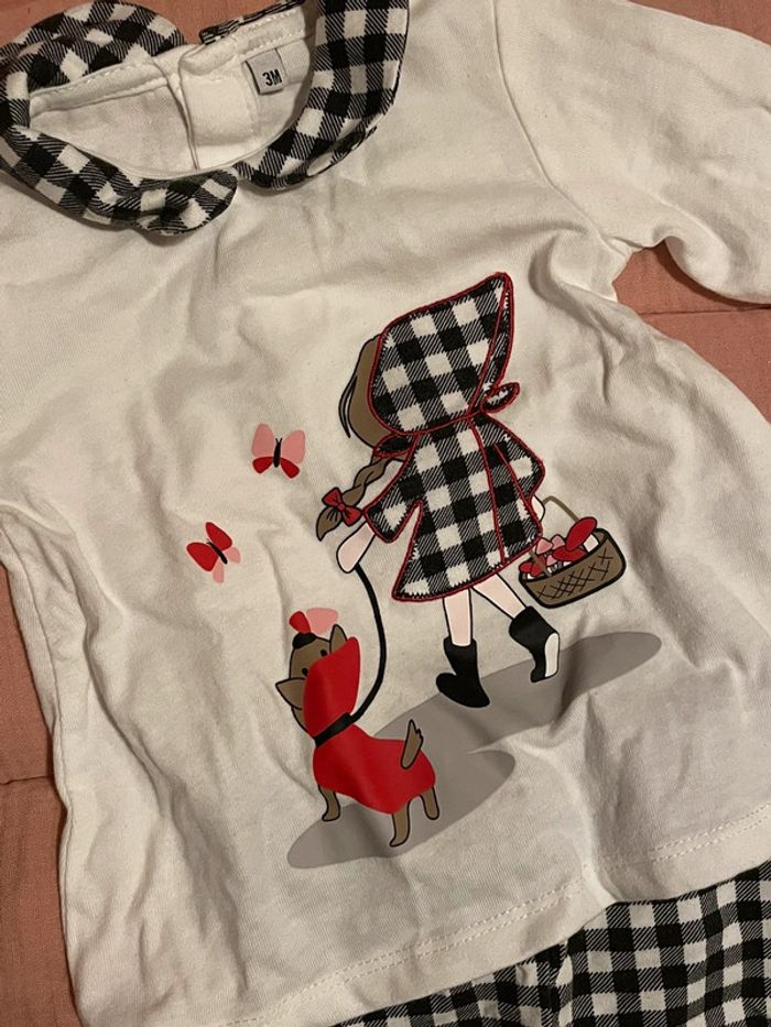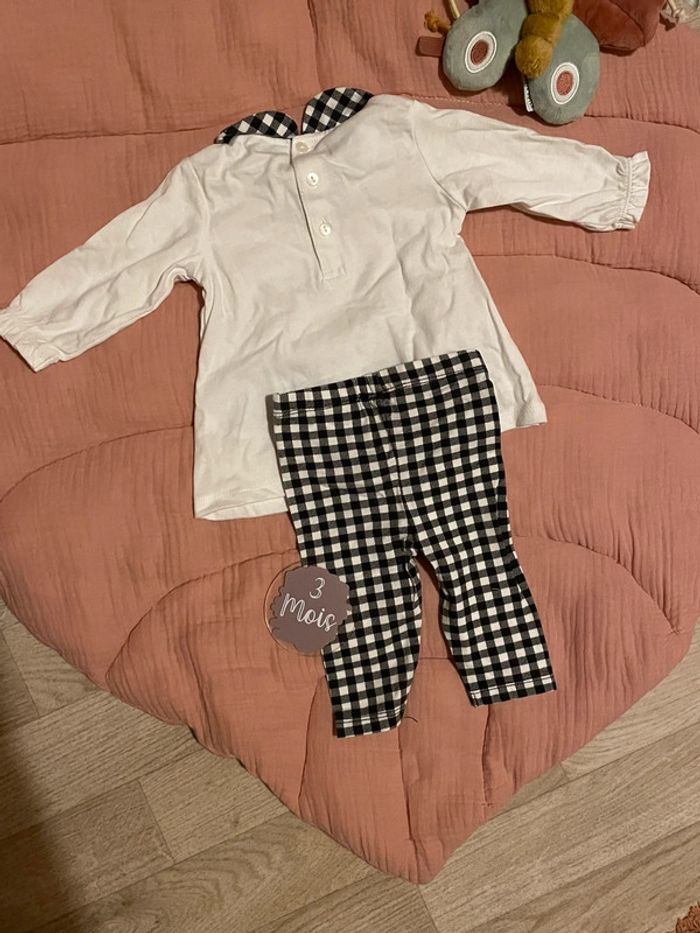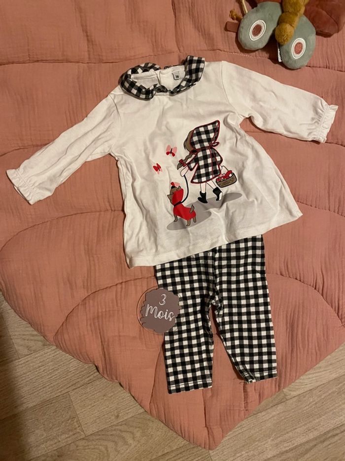 Ensemble tee shirt et legging Petite fille avec son chien Couleur : Blanc et noir et carreaux Taille : 3 mois État : Neuf, jamais porté seulement lavé Marque : non connu