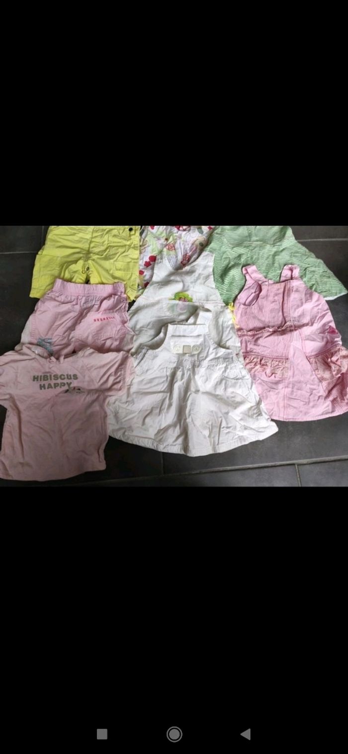 Lots de vêtements fille taille 6 mois Composé de 5 robes dont une catimini, un tee-shirt manches courtes et un short.