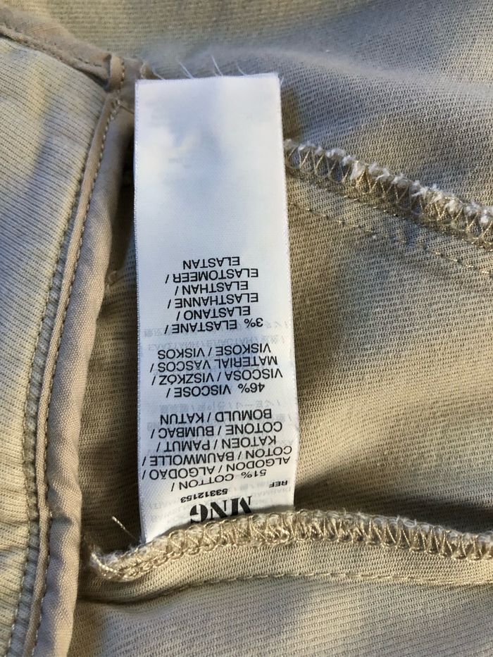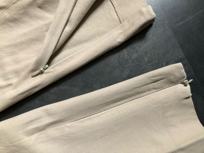 Très joli Pantalon beige Plusieurs empiècements Fermetures invisibles en bas des jambes 51% coton 46% viscose 3% élasthanne Taille S La ceinture mesure à plat 37,7 cm Longueur niveau braguette 21,7 cm Longueur entre jambes 73 cm Largeur à plat bas des jambes 13 cm Mango Suit