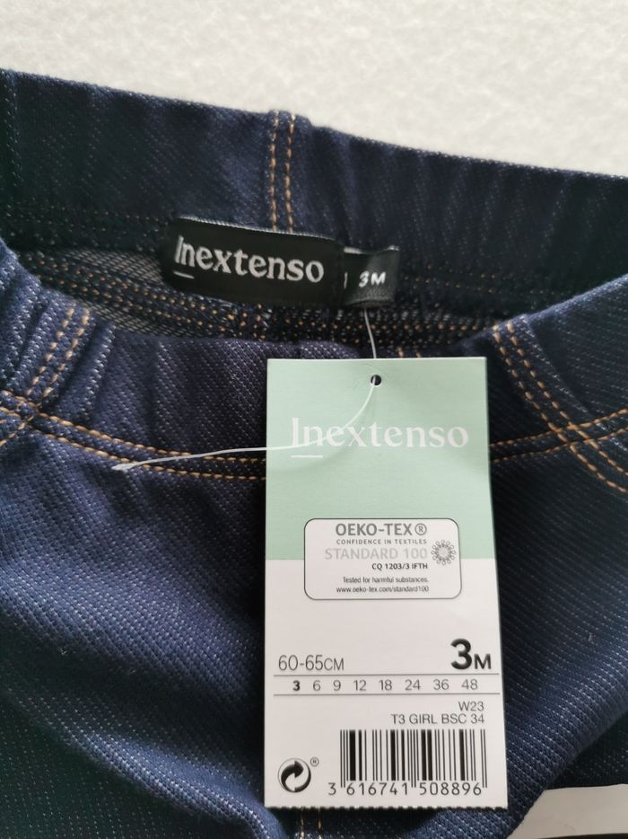 👶 Jegging effet jean 👖 👶 In extenso 🖊️ ÉTAT ✅️: Parfait👌 - Avec étiquette 🏷️ - Jamais porté 🆕 🖊️ DESCRIPTION👖: ▪️Taille 3 Mois - 60/65 cm ▪️Matière: 82% coton - 14% polyester - 4% elasthanne ▪️Taille elastiquée facile à enfiler ▪️2 Fausses poches avant ▪️Couleur: Bleu marine 🟦 💖