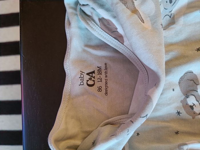 1x Sac de nuit taille 90 2x pijamas taille 86 18m 2x bodies 12m 2x bodies 18m