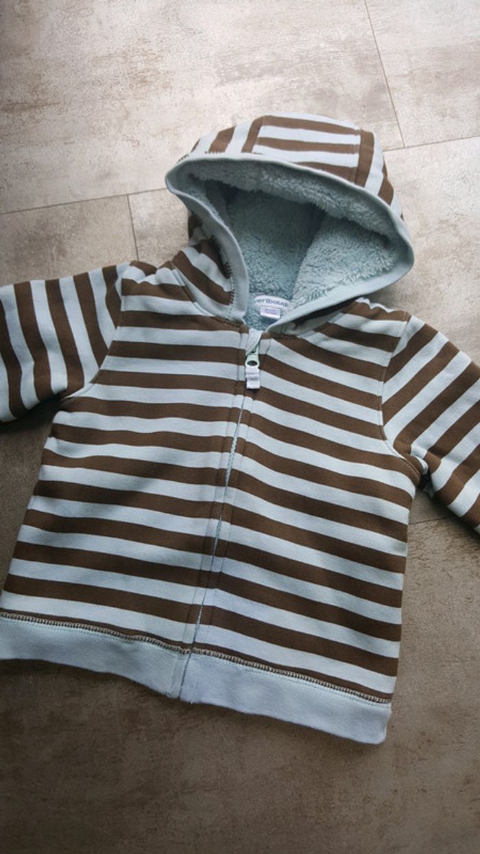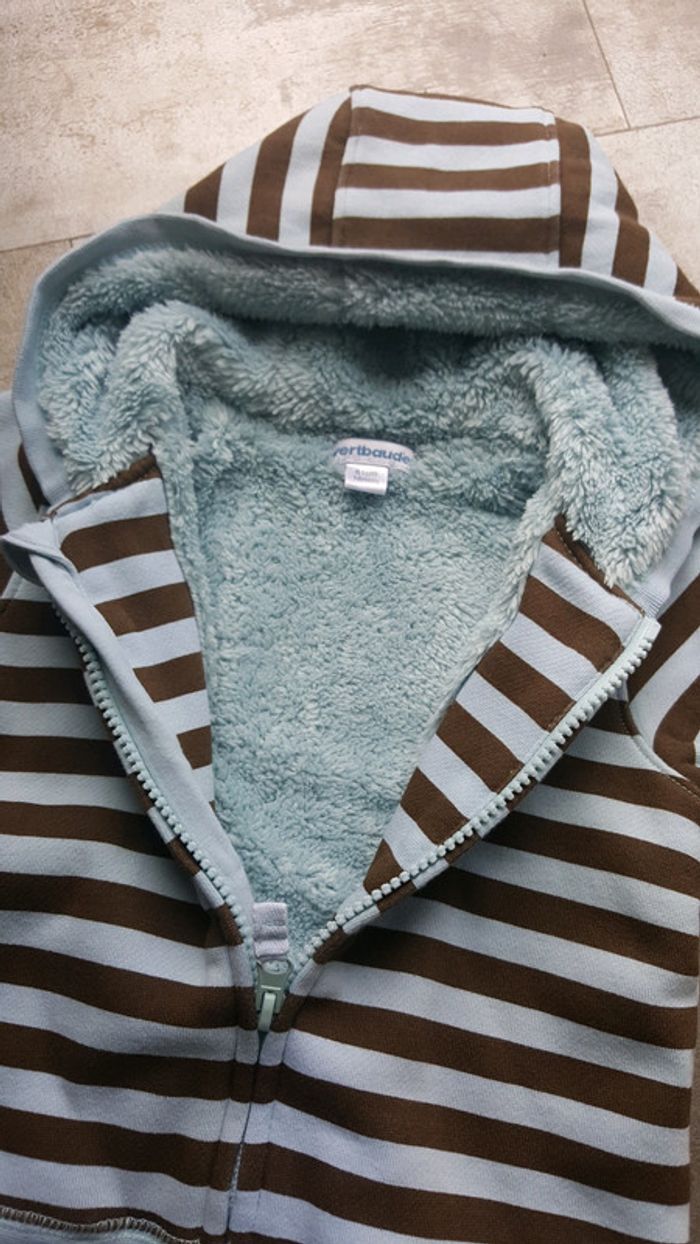 Gilet zippé intérieur fourré. Très chaud. Taille 18 mois légère petite différence de couleur mais rien de bien visible.