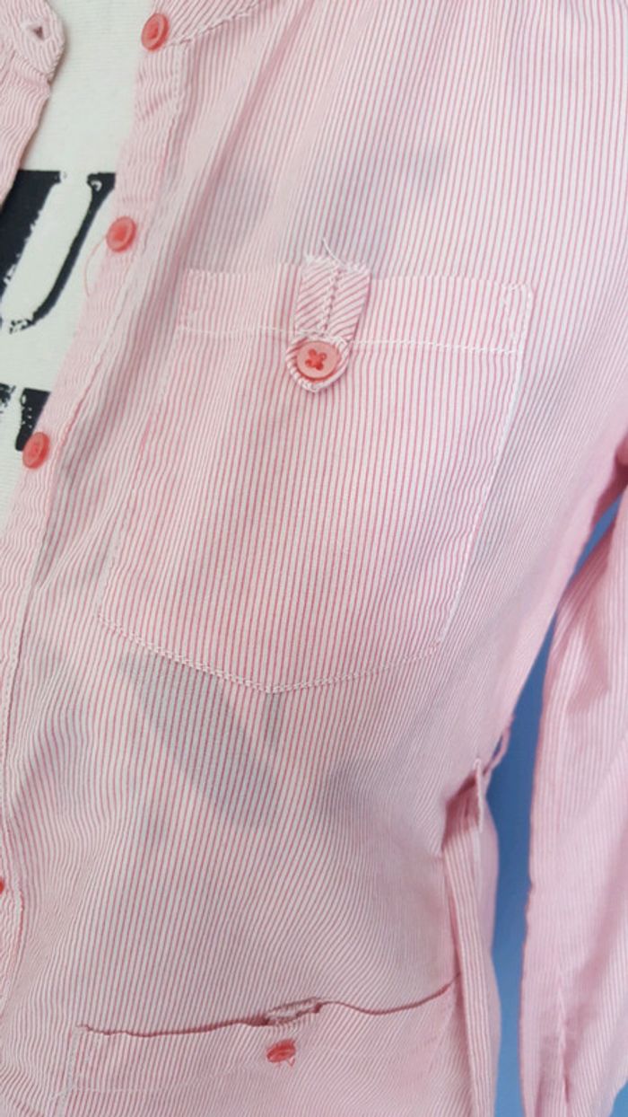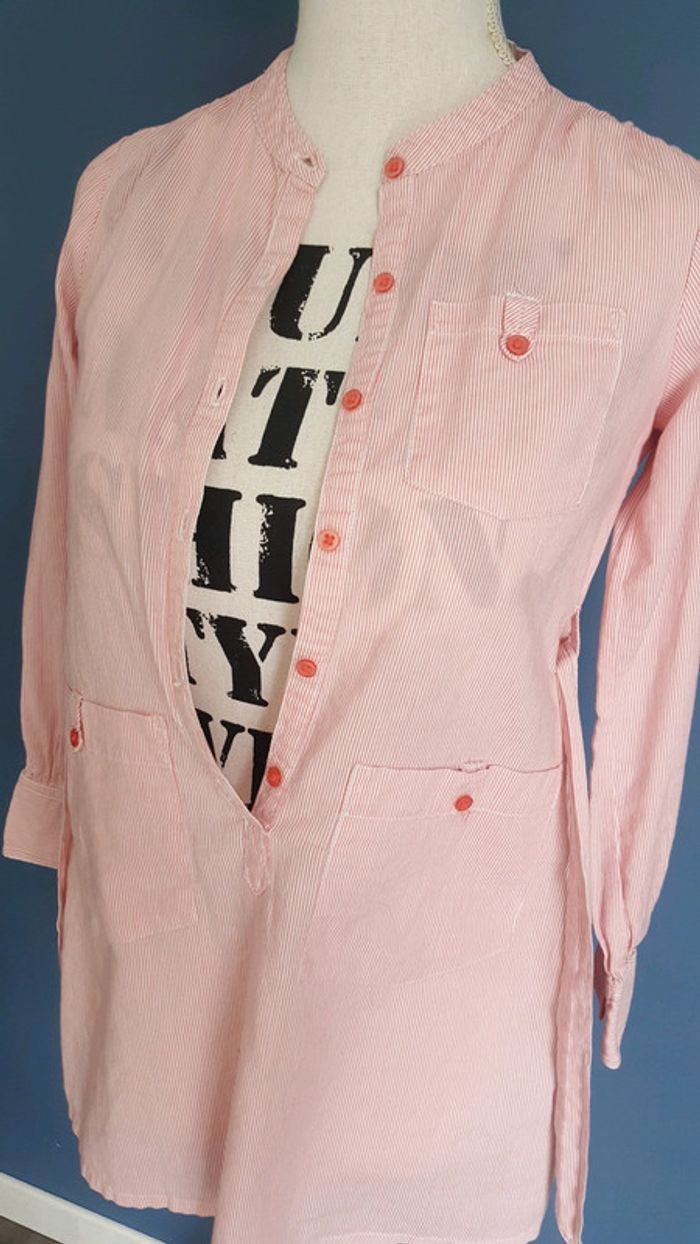 Très belle tunique à rayures rose pâle et blanc. Attention une petite tache en bas du dos voir photo 4.