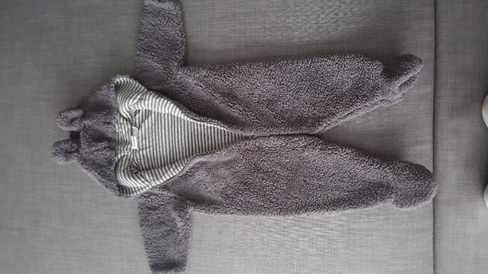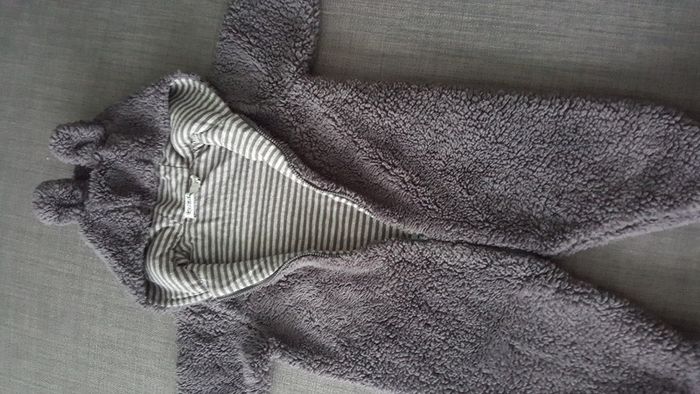 Très belle combinaison très chaude avec capuche avec 2 petites oreilles (petit ourson😉)!!! Un tout petit peu usé derrier les talons mais propre pas de trou.
