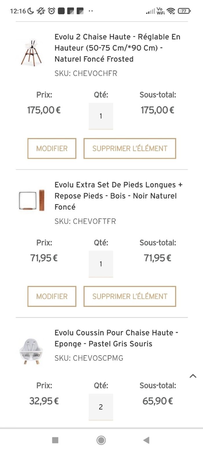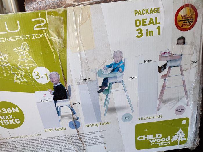 Chaise haute childwood (childhome) qui permet de mettre l'enfant à 3 positions différentes (50cm taille bureau d'enfant, 75cm table à manger, 90cm table bar/îlot). Elle est de couleur vert jade. En assez bon état malgré des éraflures dues à l'utilisation, quelques légères taches sur un coussin et une marque sur le plateau due à une casserole trop chaude posée afin d'éviter une grosse chute à bébé 😅. Plus de photos sur demande Il y a : La chaise Le harnais L'arceau Le plateau Le kit de petits pieds avec le carré de renfort Le kit de pieds moyens avec le repose pieds Le kit de pieds longs avec le carré de renfort 2 coussins en éponges Chaise très facile à nettoyer et les coussins passent sans difficulté à la machine à lever, le harnais aussi. Le lot vaut 312,85€ neuf sans les frais de port