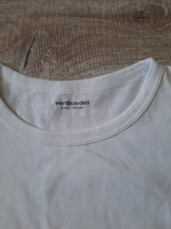 T shirt manches courtes blanc verbaudet taille 4 ans /102 cm . Très bon état juste étiquette à l interieur qui est à été coupée ( cf photo ) 100% coton. #noemiemarie24ans