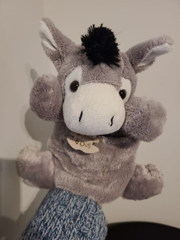 Ane HISTOIRE D'OURS doudou marionnette gris 118