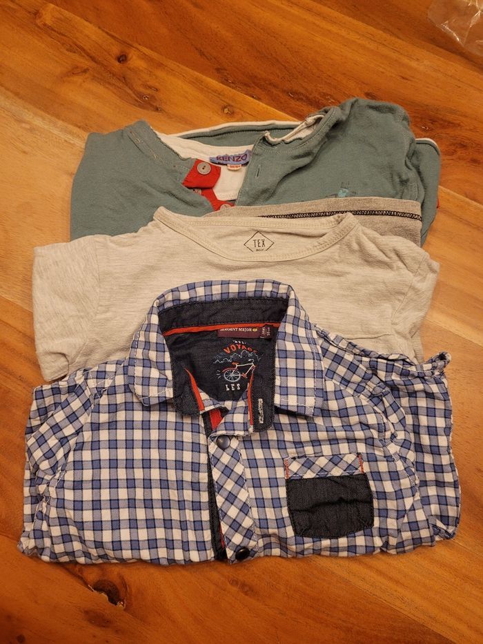 2 tee-shirts manches longues, dont un kenzo et une chemise sergent major.