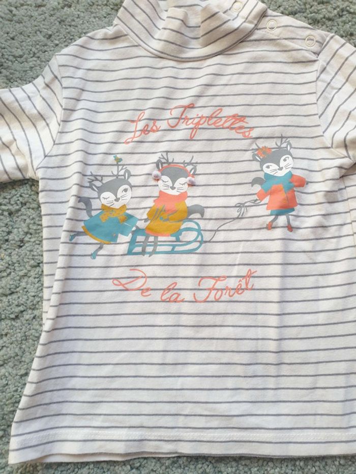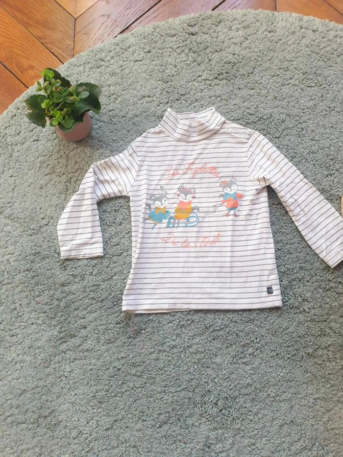 pull col roulee avec motif en TBE. Taille 18-24 mois. #inayah24mois #pullbebefille24mois #soupull24mois #marinière #sueterbebe