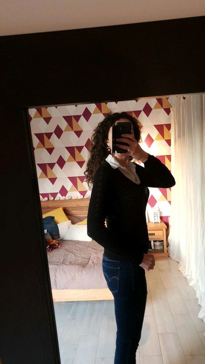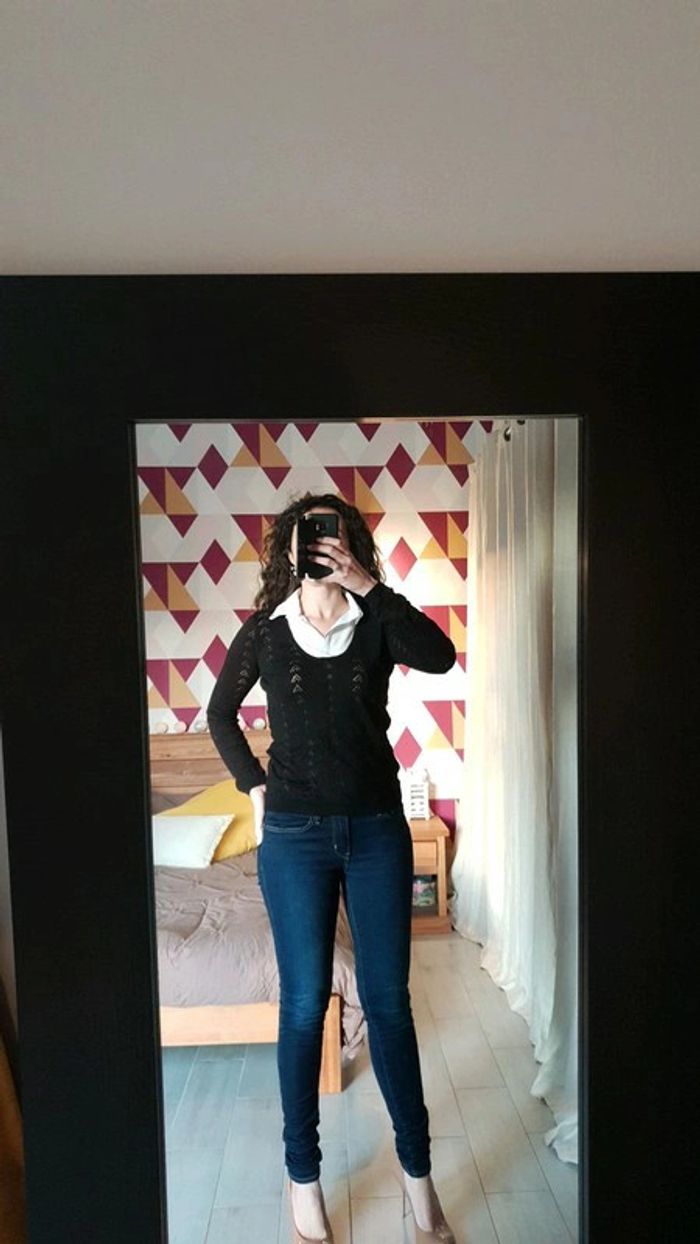 Pull ajouré Effet trompe l'oeil avec col de chemise plus strass