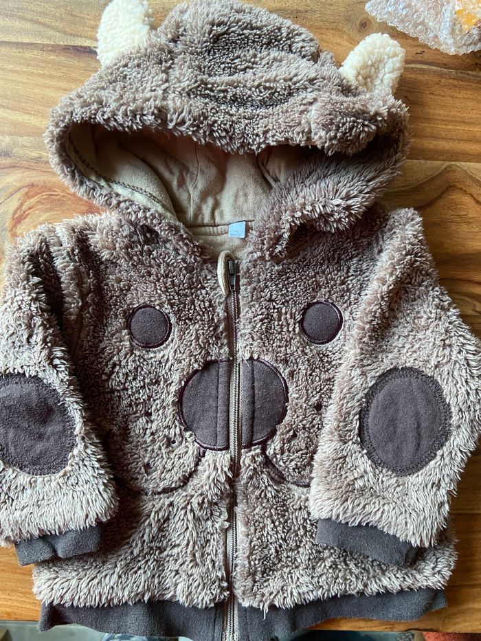 Veste /gilet en pilou pilou Très chaud Marron , motif petit chien avec capuche 6 mois