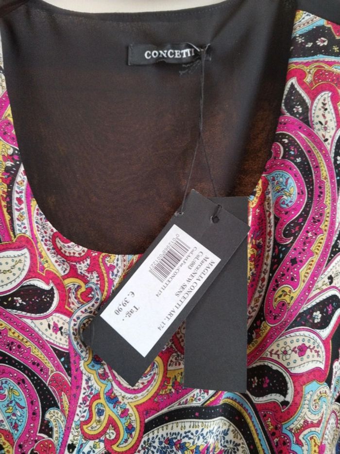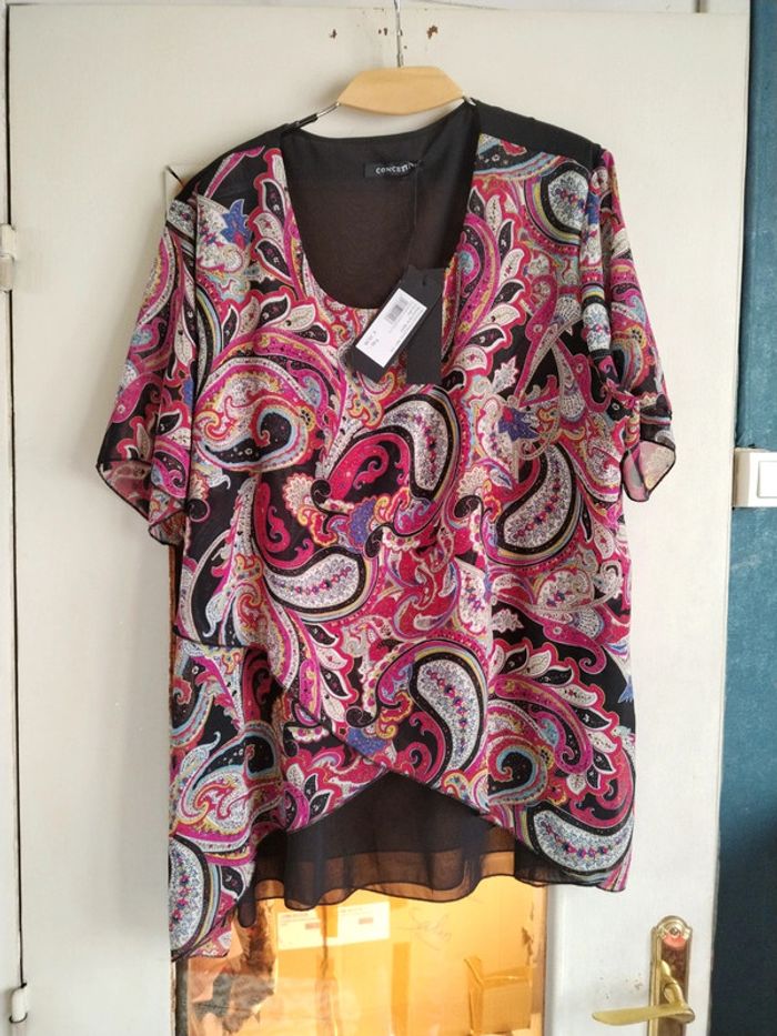 #amelie18091978femme46 ❌❌ Vérifiez vos mensurations avant achat SVP Jolie blouse manches courtes de marque Concetti. Légère et fluide. Taille XXXL Drapé en voilage, non transparente. Article neuf. Aisselle 60 cm Longueur 75 cm