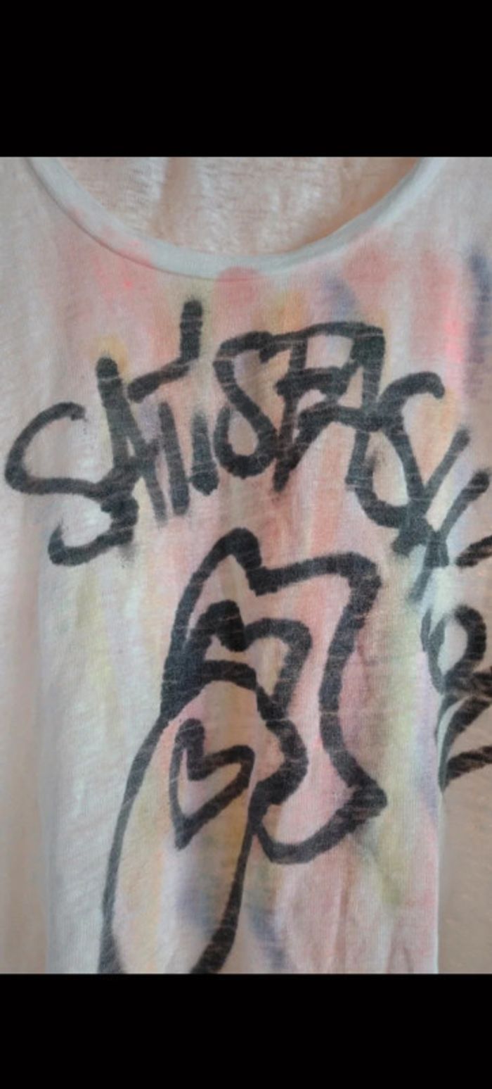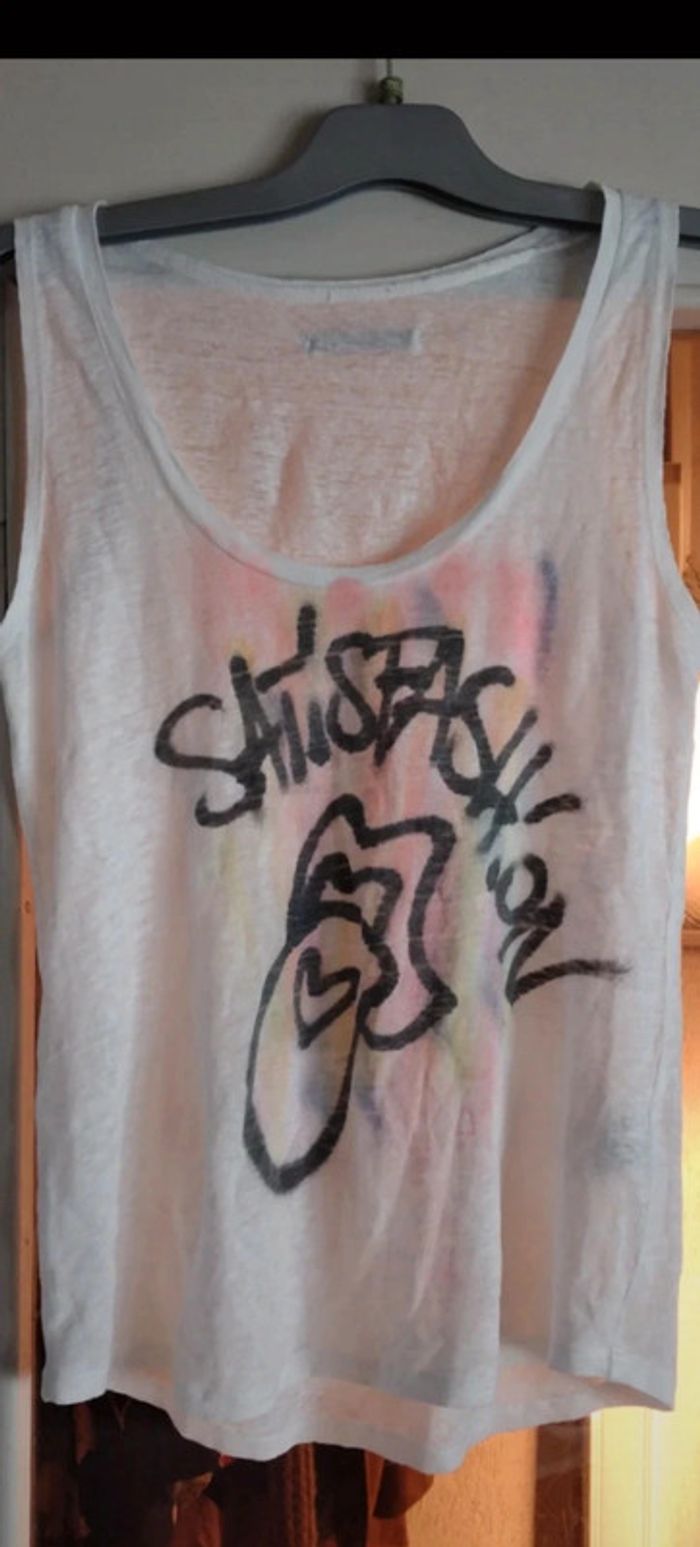 Joli débardeur en lin blanc avec graffiti réalisé par l'artiste lyonnais Jaké. De marque La Résidence. Taille M Marque très onéreuse !!!!