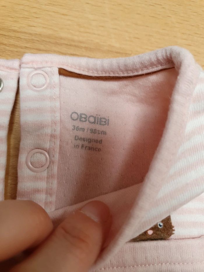 Tee shirt Obaibi 3 ans Rose et blanc Bon état