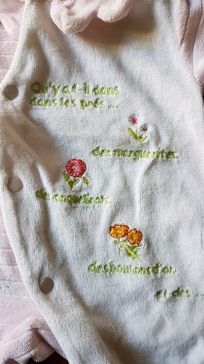 Pyjama Grenouillere Blanc et rose Taille 1 mois Très bon état #merlin02100