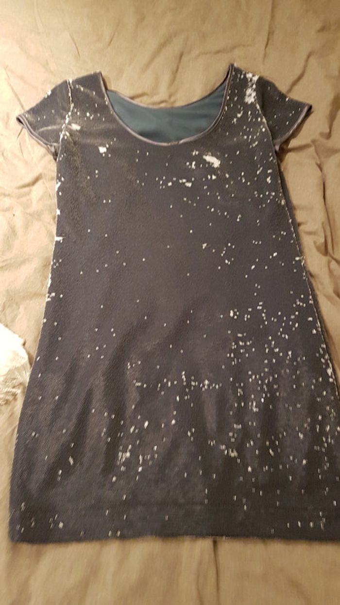 Robe ikks neuve a paillettes. Robe entièrement en sequins blanc et bleu Elle est superbe. Taille 34 N'hésitez pas à regarder mes autres ventes et à faire un lot.