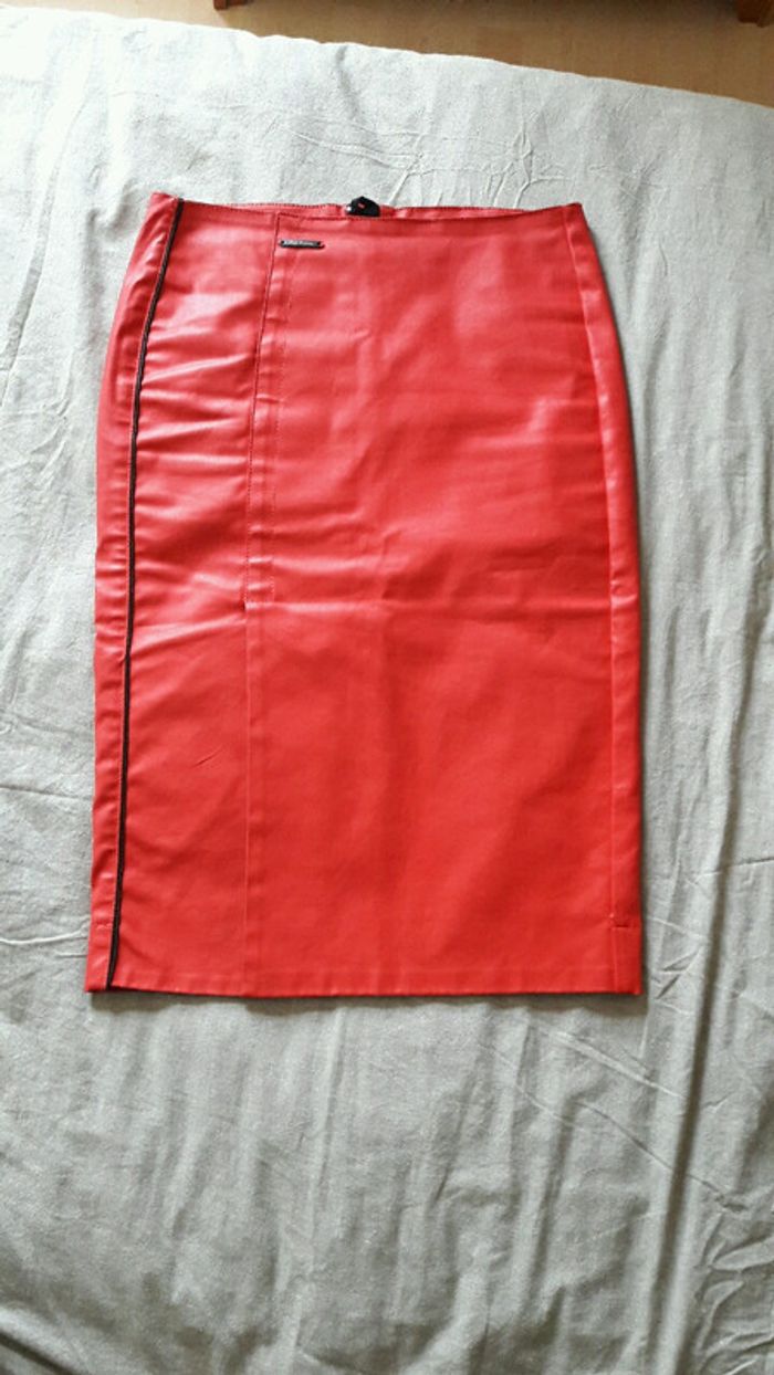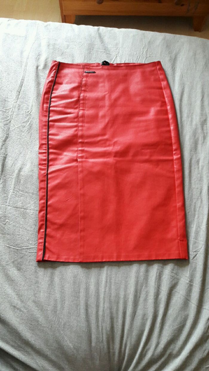 Jupe crayon rouge En tissu enduit Taille 36 Comme neuve