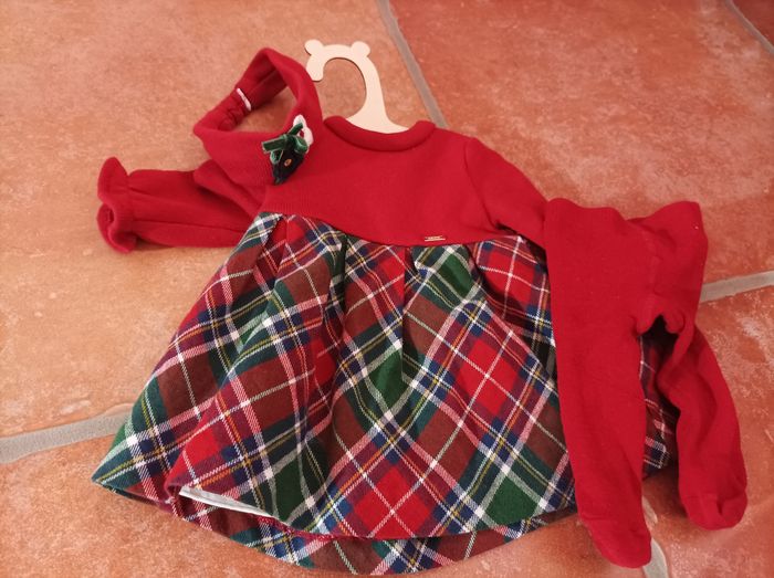 Robe rouge taille 0/1 mois de la marque Mayoral excellent état porté une fois fermeture éclair dans le dos avec ses collants et son bandeau pour la tête