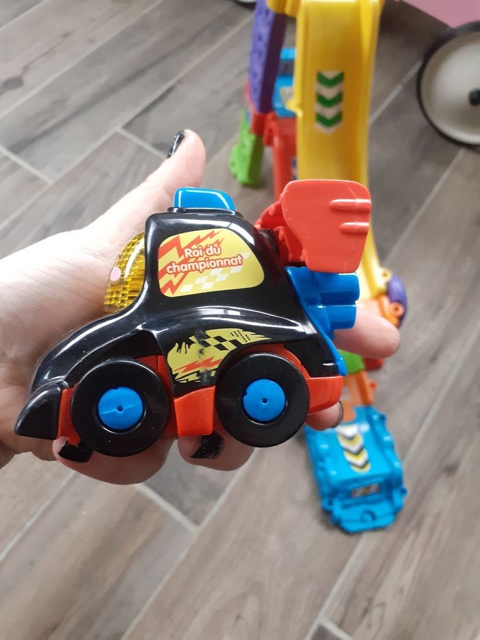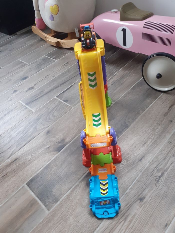 Tut tut bolide Tut tut bolide tremplin à très peu servit en très bon état le jeux est complet. Il y a deux montage possible. Parcontre la boîte est un peu abîmer. Vendu sans les piles.