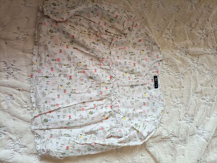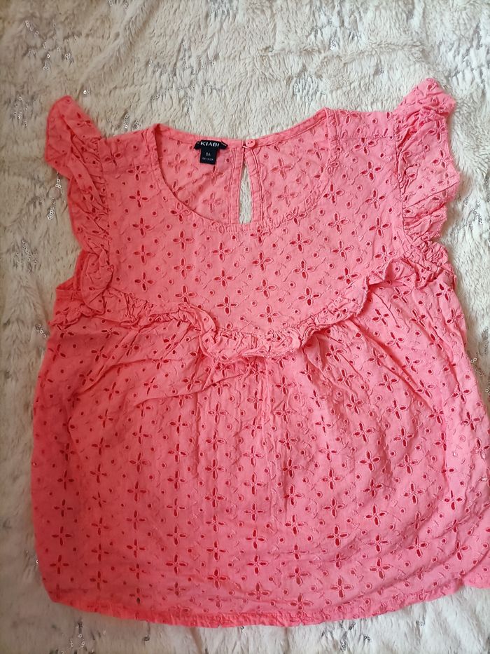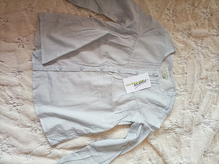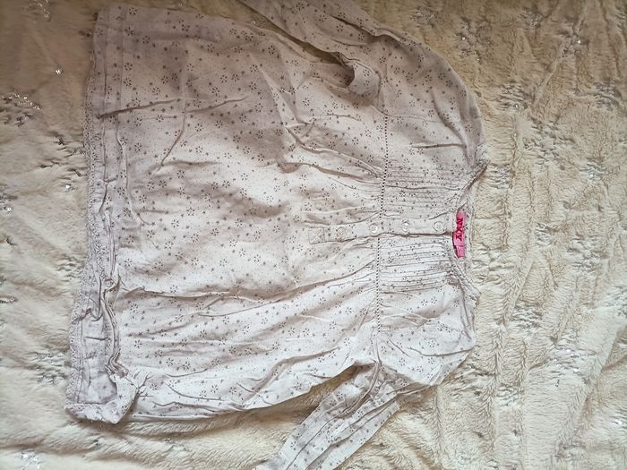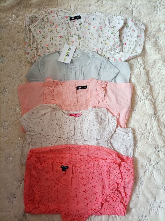 Vends lot de 5 blouses fille,1 manches longues vert baudet, neuve avec étiquette bleu clair,1 manches longues blanche et motifs gris NKY,1 manches longues blanche motif fleurs colorées Tex,1 rose manches courtes ajouré Kiabi et 1 rose clair manches courtes petit voile avec motifs tex.